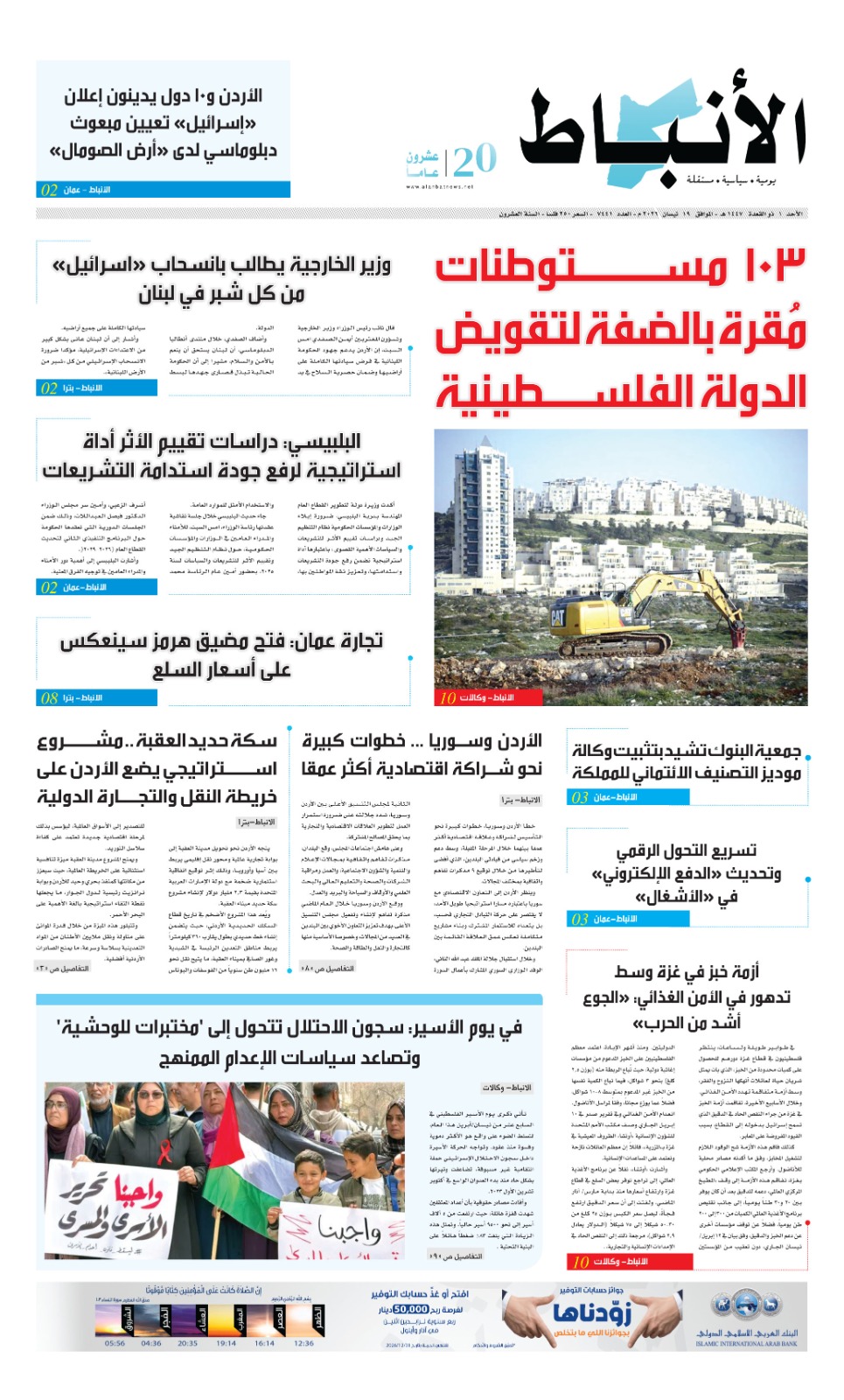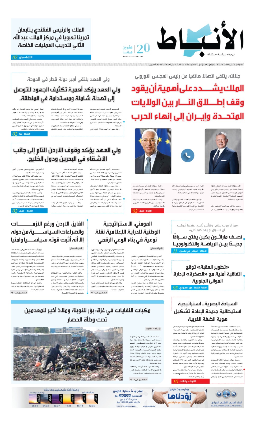 صحيفة الأنباط: واحدٌ وعشرون عاماً من الكلمة الحرة.. وعشرونٌ قادمة برؤية الفرسان