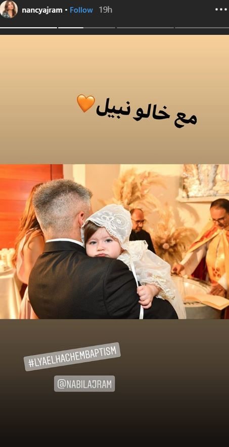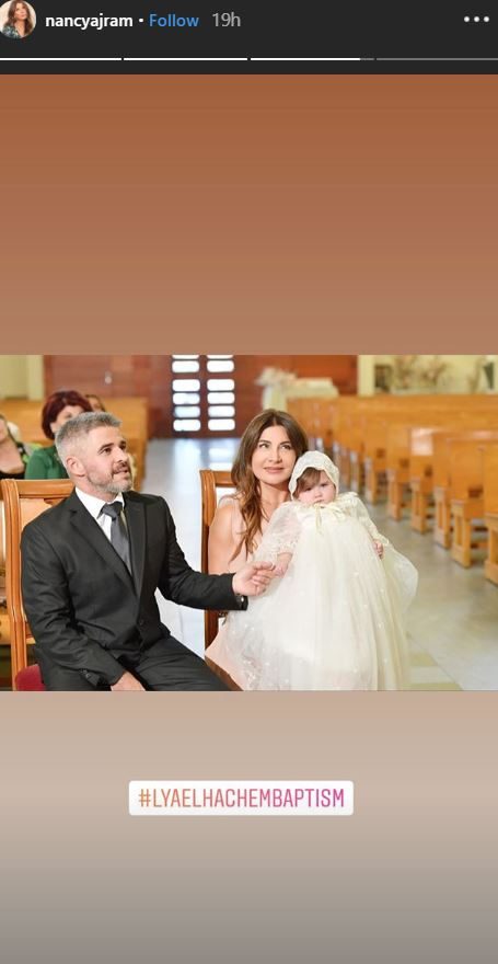 2 مليون إعجاب بأول صورة واضحة لابنة نانسي عجرم الصغرى من الاحتفال بمعموديتها