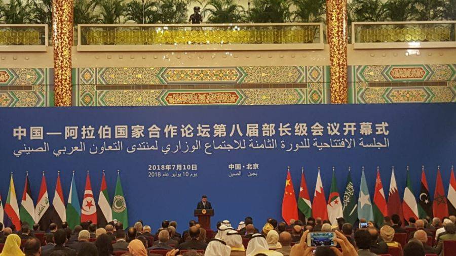 جاء ذلك خلال افتتاح الرئيس جين بينغ اليوم الثلاثاء الدورة الثامنة للاجتماع الوزاري لمنتدى التعاون العربي الصيني بحضور امير الكويت الشيخ صباح الاحمد الجابر الصباح ووزارء خارجية عرب وسفراء وعدد من المسؤولين ووسائل اعلام.