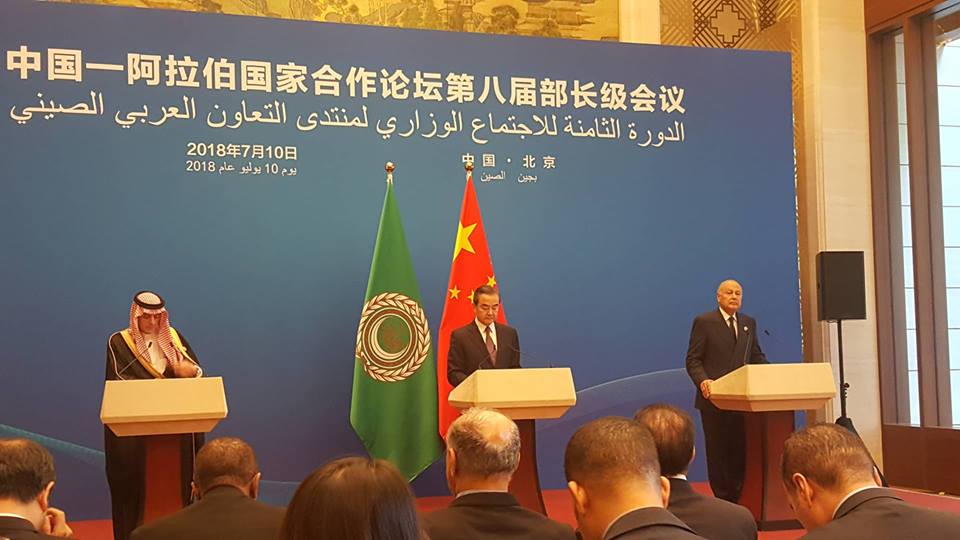وكان الرئيس الصيني شي جين بينج افتتح صباح امس الثلاثاء، الاجتماع الوزاري الثامن لمنتدى التعاون الصيني - العربي، بالعاصمة بكين بحضور أمير الكويت الشيخ صباح الأحمد الجابر الصباح، أحمد أبو الغيط أمين عام جامعة الدول العربية، وزير الخارجية سامح شكري، ضمن 17 وزيرا للخارجية من الدول العربية.
