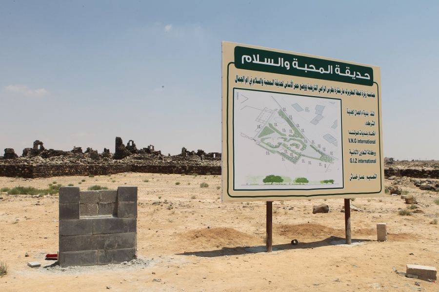 وتبدا جولة البطريرك الراعي بزيارة بلدية ام الجمال حيث يصطحبه رئيس البلدية حسن الرحيبة الى منطقة الاثرية ليضع حجر الاساس لحديقة المحبة والسلام في ام الجمال .