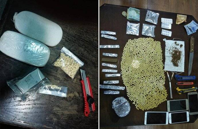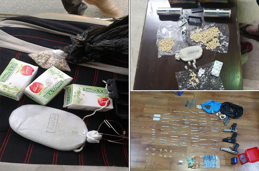 وفي احدى محافظات الشمال نفذت كوادر الادارة مداهمة لاحد المنازل القي القبض خلالها على ثلاثة اشخاص من المشتبه بهم بترويج المواد المخدرة و ضبط بحوزتهم ٢٠٠٠ حبة مخدرة وكميات من المواد المخدرة الاخرى المعدة للبيع ، وفي مداهمة اخرى القي القبض من خلالها على احد المروجين وبحوزته كميات متفرقة من المواد المخدرة وثلاثة مسدسات صوت وعدة طلقات حية ، وفي ذات المحافظة نفذت حملة امنية على مروجي ومتعاطي المواد المخدرة ضبط خلالها 6 اشخاص و بحوزتهم كميات متفرقة من تلك المواد.