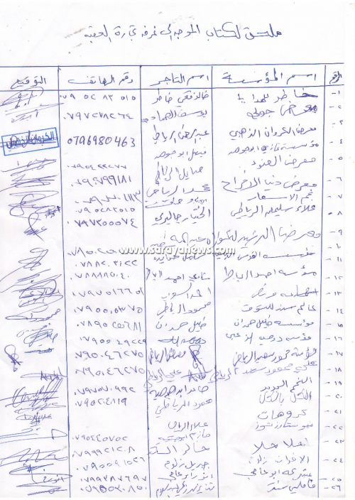 - دعا عدد كبير من تجار مدينة العقبة رئيس غرفة تجارة العقبة نائل الكباريتي لعقد إجتماع طارئ للهيئة بعد التراجع الاقتصادي الواضح في التجارة ووقوعهم بخسائر فادحة.