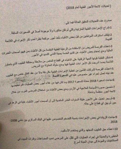 وبينت النقابة انه من حق الاطباء ان يوازون بين رفع الأسعار بالمملكة وأسعار اجورهم.