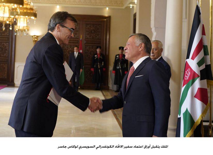 فقد تقبل جلالة الملك عبدالله الثاني أوراق اعتماد كل من سفير دولة الكويت عزيز رحيم مزيد الديحاني، وسفير الاتحاد الكونفدرالي السويسري لوكاس جاسر، وسفير جمهورية الفلبين أكمد عطاالله سكام، وسفير دولة إسرائيل أمير ويسبورد، وسفير جمهورية القمر المتحدة غير المقيم الحبيب عباس عبدالله، وسفير جمهورية نيبال الفيدرالية الديمقراطية غير المقيم هبندرا برصادا أريال.