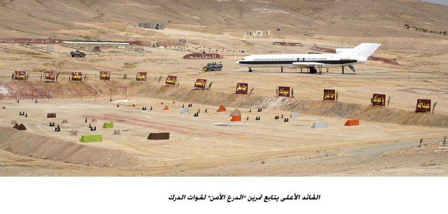 وتابع جلالة القائد الأعلى، خلال الزيارة، تمرينا أمنيا بعنوان "الدرع الآمن" نفذته كتيبة درك عالية الجاهزية، اشتمل على تطبيقات ميدانية تحاكي واقع الواجبات المحتملة، لواجب أمني مفترض في قرية.