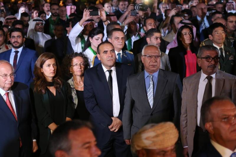 وبدأ الحفل المعد بهذه المناسبة بالسلامين الوطنيين السعودي والأردني.