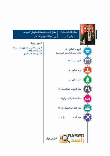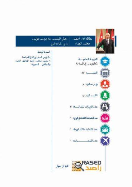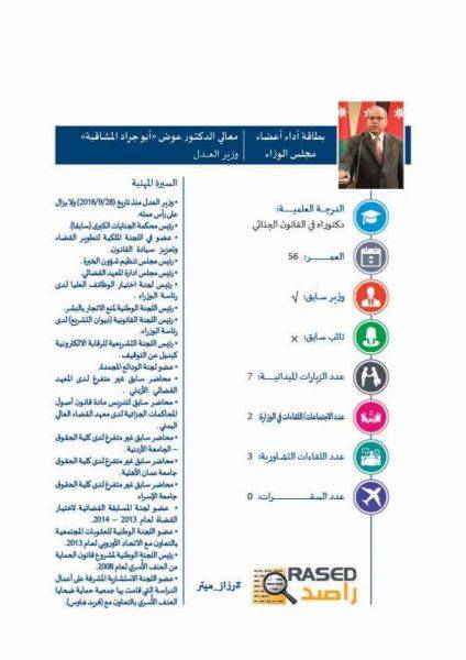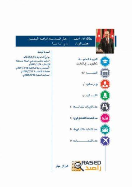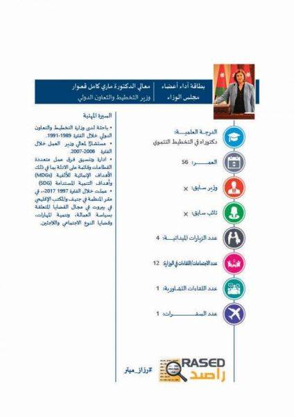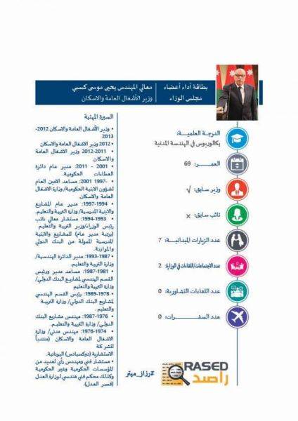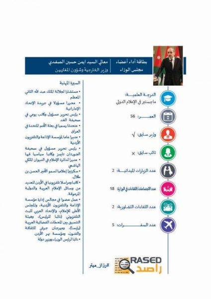 قدّم تقرير راصد لمراقبة اداء الحكومة، بطاقات أداء أعضاء مجلس الوزراء لأول مرة على المستوى العربي ومستوى الشرق الأوسط.