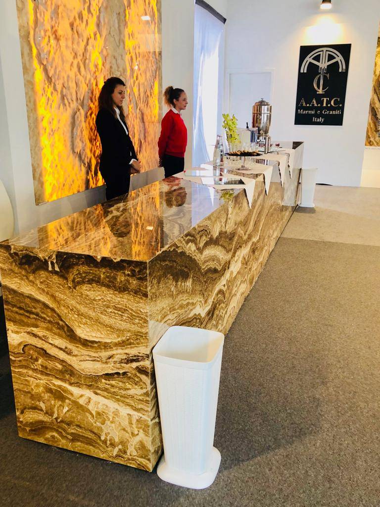 مجموعة المناصير وبالتعاون مع شركة AATC الإيطالية تعلنان البدء بتسويق منتجهم الجديد Onyx Stone (Alabaster) في العالم من خلال المشاركة في المعرض التجاري الدولي للحجر والتصميم والتكنولوجيا المقام حالياً في مدينة ڤيرونا- ايطاليا والمستمر لغاية 29 من أيلول الحالي.