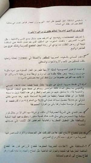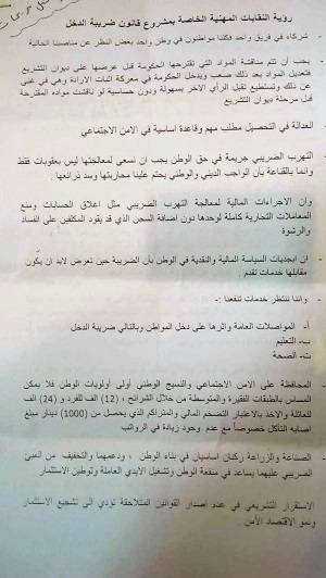 سلم مجلس النقباء برئاسة نقيب الاسنان رؤية النقابات المهنية للجنة الاقتصاد والاستثمار النيابية. وسلم الطراونة مطالب النقابات لرئيس لجنة الاقتصاد والاستثمار النائب خير ابو صعيليك. وتاليا مطالب النقابات:
