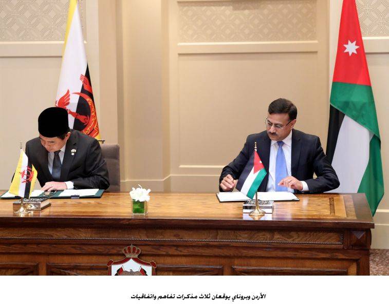 فقد تم توقيع مذكرة تفاهم حول التعاون العسكري، وقعها عن الجانب الأردني، رئيس هيئة الإركان المشتركة، وعن سلطنة بروناي ممثل وزارة الدفاع بروناي- دار السلام قائد القوات المسلحة الملكية.