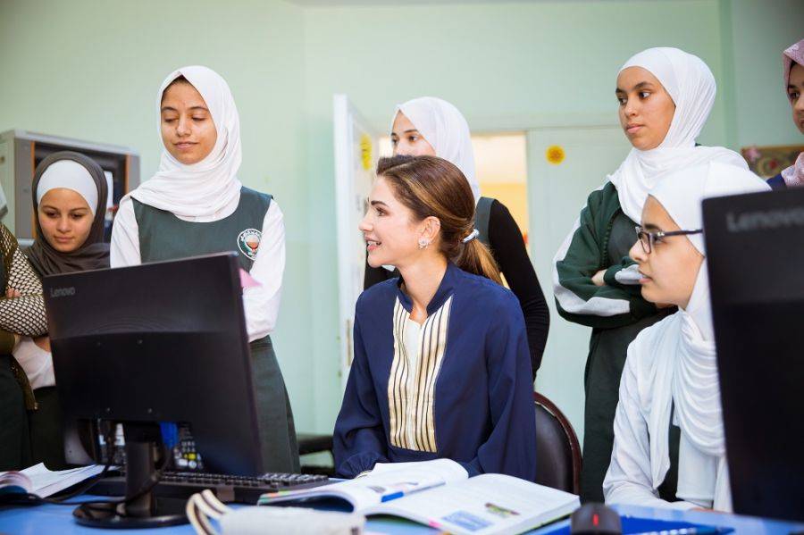 التقت الملكة رانيا العبدالله أمس، في مدرسة الملك عبدالله الثاني للتميز في محافظة الكرك، عدداً من معلمي محافظات الجنوب المستفيدين من برامج أكاديمية الملكة رانيا لتدريب المعلمين.