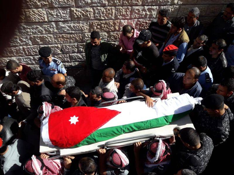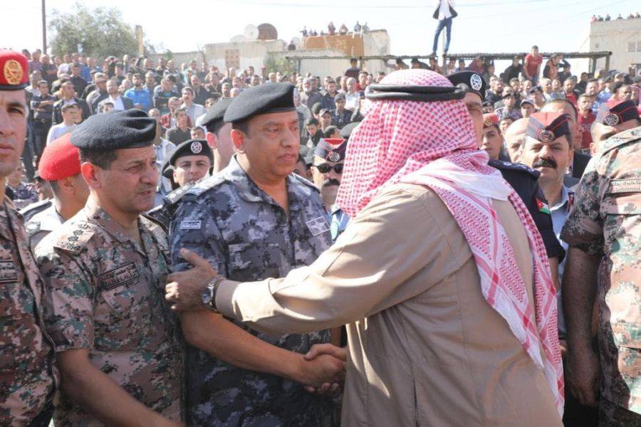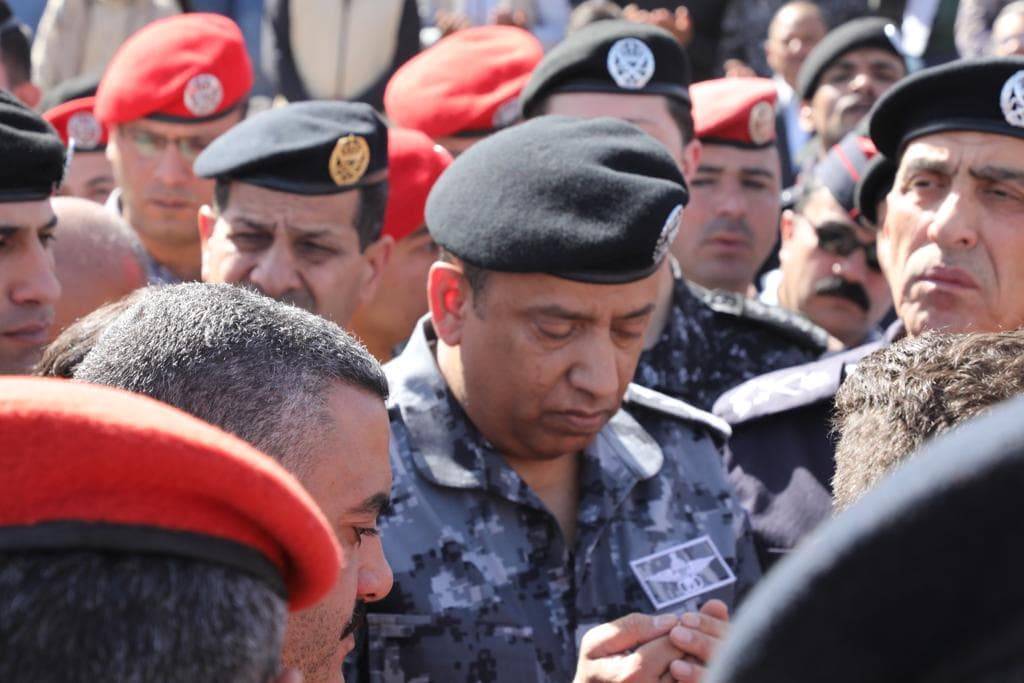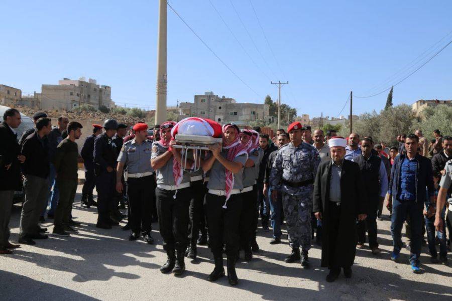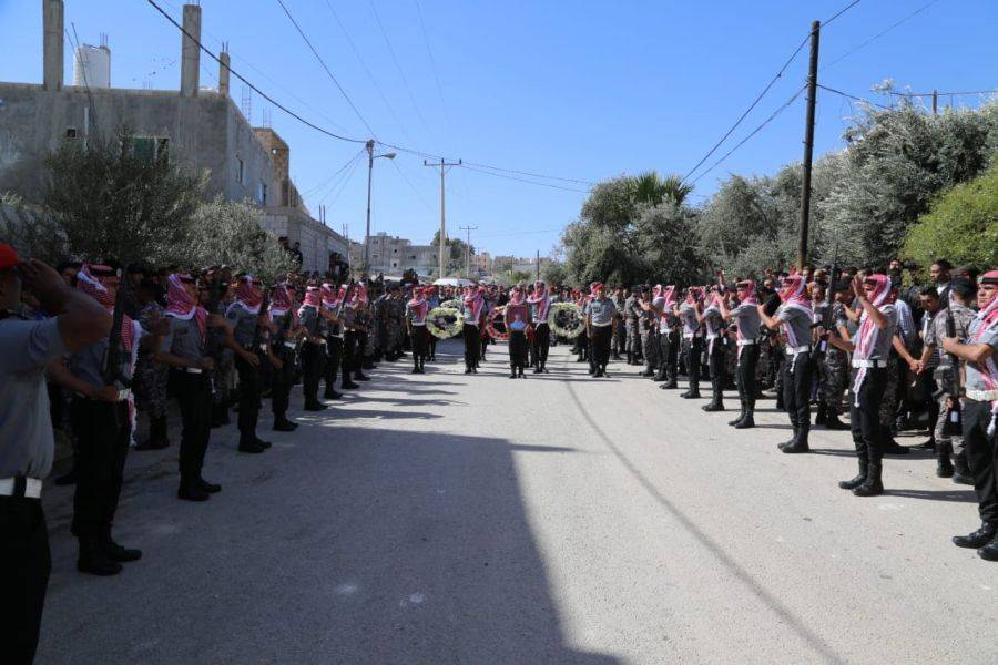 وشارك رئيس هيئة الأركان المشتركة الفريق الركن محمود فريحات، ومدير عام قوات الدرك اللواء الركن حسين الحواتمة ومدير الأمن العام اللواء فاضل الحمود، ومحافظ إربد رضوان العتوم، ومديري الأجهزة الأمنية في المحافظة في تشيع جثمان الشهيد.