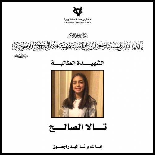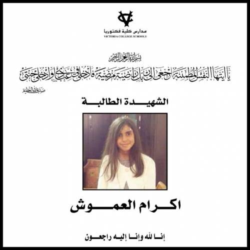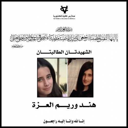 نشرت مدرسة فكتوريا أسماء طلبتها الشهداء، الذين ارتقوا في حادث البحر الميت يوم الخميس الماضي.