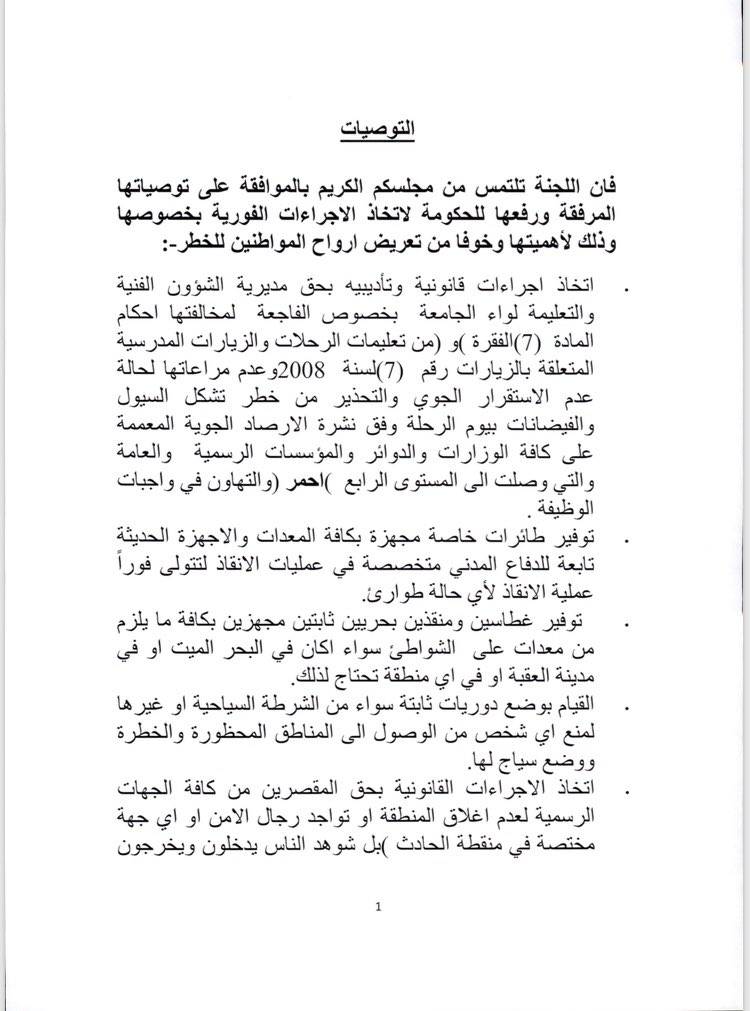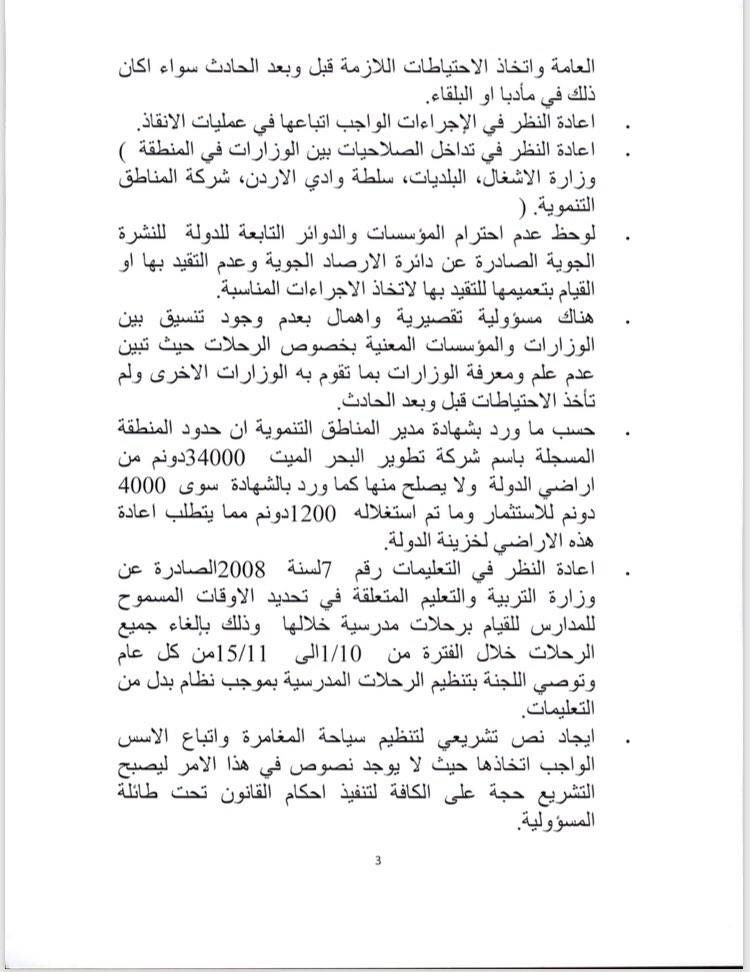 تنشر "الانباط" توصيات لجنة التحقق النيابية بحادثة البحر الميت.