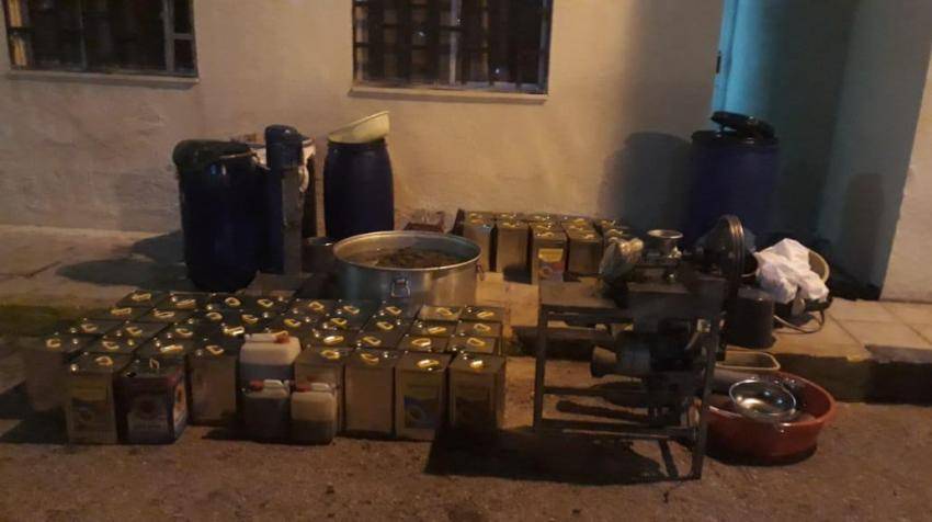 وتم ضبط داخل المصنع 13 تنكة زيت زيتون مغشوش و40 تنكة زيت قلي و150 لتر تحت التجهيز بالاضافة لماكينات وادوات للتصنيع.