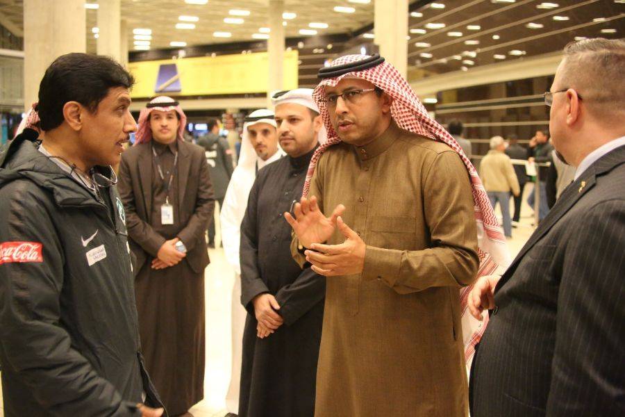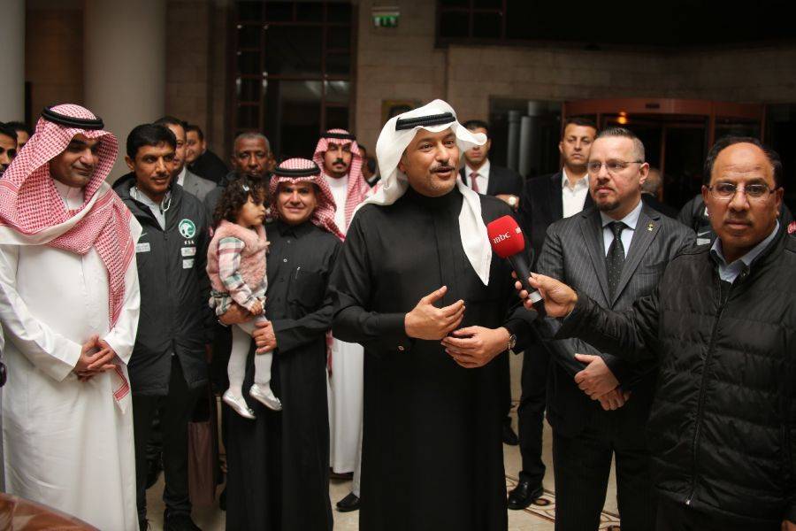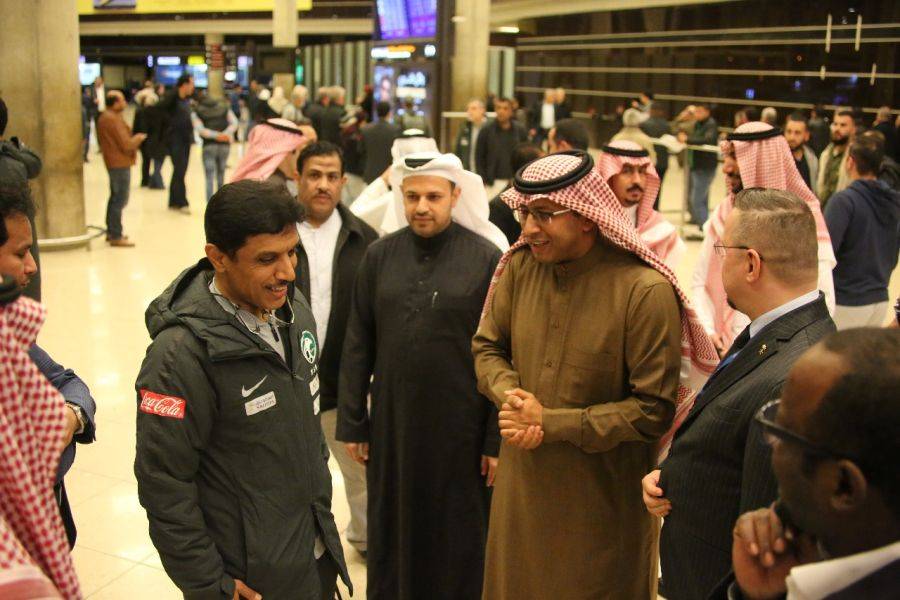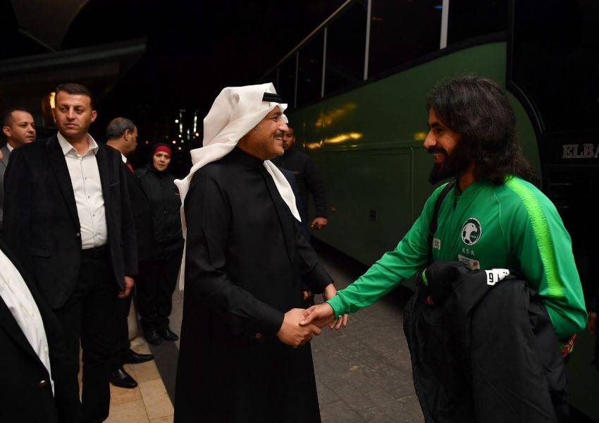 استقبل الامير خالد بن فيصل بن تركي سفير خادم الحرمين الشريفين لدى المملكة الأردنية الهاشمية وأعضاء السفارة والمكاتب التابعة لها اليوم الاثنين ، بعثة المنتخب السعودي الأول لكرة القدم، فور وصولها إلى العاصمة الأردنية عمّان ، حيث يلعب المنتخب الوطني السعودي يوم غد الثلاثاء مباراه الودية أمام شقيقة المنتخب الوطني الاردني على ستاد الملك عبدالله الثاني بالقويسمة، تمهيدا للمشاركة في كأس آسيا..