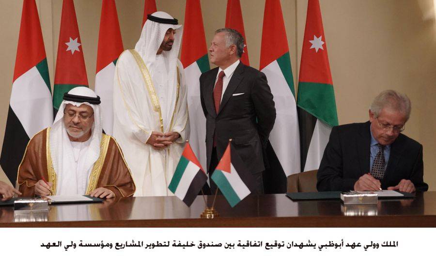 إلى ذلك شهد جلالة الملك عبد الله الثاني وسمو الشيخ محمد بن زايد آل نهيان ولي عهد أبوظبي نائب القائد الأعلى للقوات المسلحة في دولة الإمارات العربية المتحدة، اليوم الثلاثاء، توقيع اتفاقية بين صندوق خليفة لتطوير المشاريع ومؤسسة ولي العهد، بهدف دعم الإبداع والابتكار وقطاع ريادة الأعمال والمشاريع التنموية في الأردن.