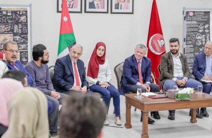 وأضاف أنه نجح في إطلاق مكتبة إلكترونية من خلال اتفاق تعاوني بين الجامعة وموسوعة ويكيبيديا، مشيرا إلى أنه يعمل وزملاء له في الجامعة على إثراء المحتوى العربي على شبكة الأنترنت. أما الطالبة مرح تليلان، أشارت إلى أنها تحدثت خلال اللقاء مع جلالة الملك عن أهمية برنامج إدارة الأزمات والكوارث الطبيعية الذي أطلقته الجامعة، وهو الأول من نوعه في الشرق الأوسط. ولفت الطالب مشعل العنزي إلى أنه طرح مجموعة من الأفكار ركزت على أهمية الثقافة ونشرها في المجتمع، وضرورة دعم المثقفين والفنانين والشعراء الذين يقع على عاتقهم دور أساسي في إبراز صورة الوطن وتاريخه ومنجزاته. من جهته أشار الطالب مأمون الزواهرة إلى أنه تحدث خلال الجلسة عن أهمية تجاوز ثقافة العيب عند الشباب، والبحث عن أفكار توفر لهم فرص العمل وأن لا ينتظروا الحصول على الوظائف، لافتاً إلى أنه عمل على تأسيس مشروع صغير يتمثل بإنتاج مشغولات معدنية وفر له دخلاً مناسباً، إضافة إلى مواصلته للدراسة الجامعية. أما الطالبة هبة عليان، فتحدثت عن فكرة تنفذها في نادي السياحة والتراث في الجامعة، حيث تعمل مع زملائها بالشراكة مع مؤسسات وطنية على إطلاق تطبيق للإرشاد السياحي في المملكة، يتضمن معلومات عن الأماكن السياحية والحالة الجوية والنقل والخدمات العامة، مؤكدة أن النادي يركز على ترسيخ مفهوم السياحة الداخلية للطلبة الأردنيين والأجانب في المملكة. يشار إلى أن الجامعة الهاشمية أنشئت عام 1991، وبدأت التدريس عام 1995، وتقام على مساحة 8519 دونما، ويدرس فيها حاليا نحو 24 ألف طالب وطالبة، 63 بالمائة منهم إناث. وتضم كليات الجامعة تخصصات العلوم والآداب والاقتصاد والتربية والهندسة والتمريض والعلوم الطبية والرياضة والموارد الطبيعية والسياحة وتكنولوجيا المعلومات والطفولة والطب والصيدلة والأراضي الجافة، إضافة إلى الدراسات العليا والدراسات الاستراتيجية.