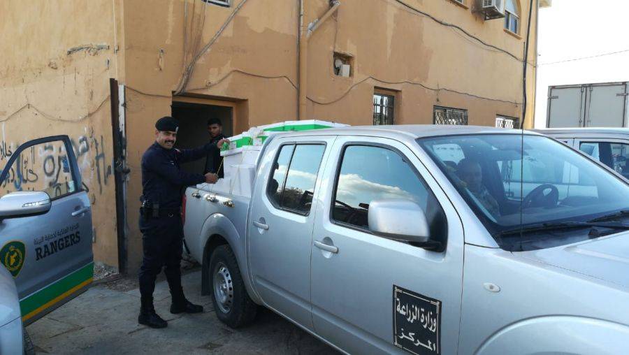 ضمن الحملات الرقابية لوزارة الزراعة ممثلة بمديرية الوقاية وصحة النبات وكوادر شعبة تصنيع واستيراد المبيدات وبعد عملية مراقبة وتتبع دامت لأشهر لمعرفة مصدر المبيدات المزورة وبالتعاون مع الشرطة البيئية ومركز أمن الجويدة تم ضبط ٤٧٠٠ عبوة مبيد بالإضافة الى كميات من البذور المعدة للبيع في السوق المحلي .