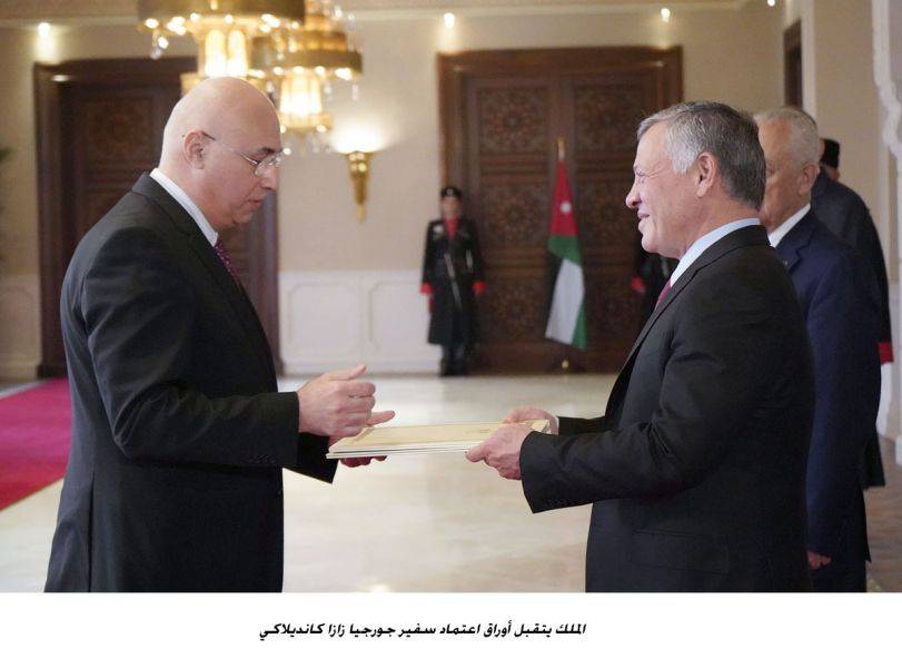 وحضر مراسم تقبل أوراق اعتماد السفراء رئيس الديوان الملكي الهاشمي، ووزير الخارجية وشؤون المغتربين.