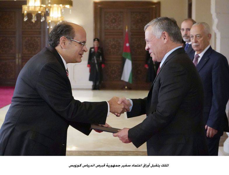 فقد تقبل جلالته أوراق اعتماد سفير جمهورية مصر العربية شريف أحمد محمود كامل، وسفير جمهورية التشيك يوزف كوتسكي، وسفير جمهورية قبرص اندرياس كوزوبس، وسفير جورجيا زازا كانديلاكي، وسفير جمهورية إيطاليا فابيو كاسيزي، وسفير البوسنة والهرسك ماتو زيكو، وسفير جمهورية النمسا اوسكار فوستنغر، وسفير جمهورية زامبيا غير المقيم جوزيف تشيلنجي.