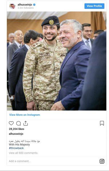 الأنباط -نشر ولي العهد الامير الحسين بن عبدالله، اليوم الخميس، عبر حسابه الرسمي في موقع تبادل الصور انستغرام، صورة تجمعه بجلالة الملك عبدالله الثاني.
