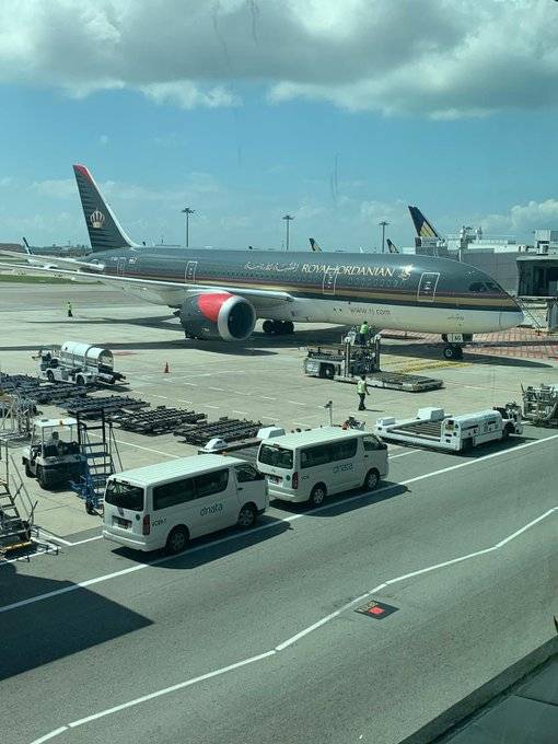 - أقلعت طائرة الملكية الأردنية من سنغافورة إلى الأردن، وعلى متنها أجهزة كشف فيروس كورونا المستجد ومعدات طبية أخرى، بحسب سفير الأردن في سنغافورة محمود الحمود.