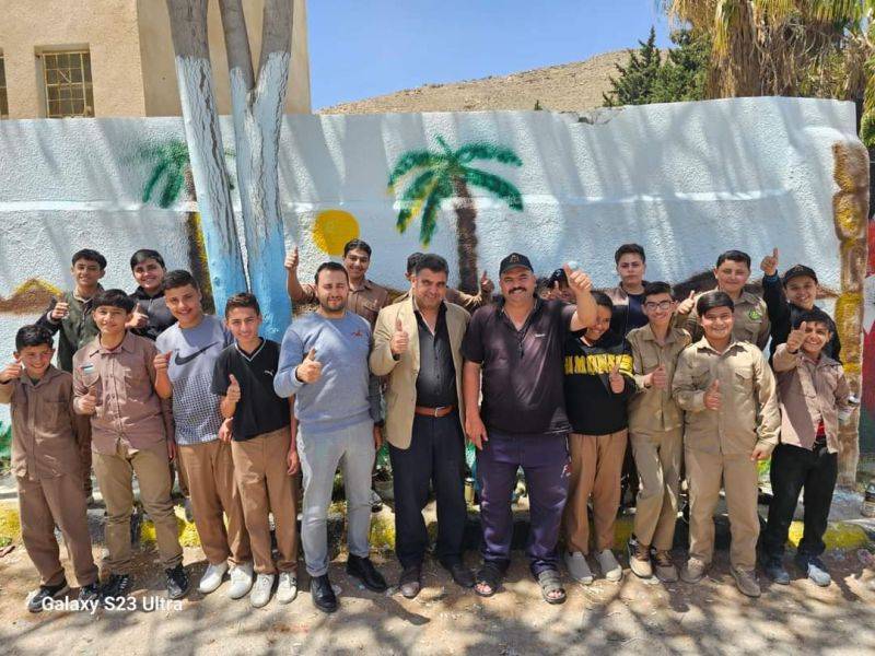 تضمن النشاط رسم جداريات وطنية تعبر عن الولاء والانتماء للوطن والقيادة الهاشمية وتضفي لمسات جمالية للمكان أشرف عليها المدرب عثمان الضمور.
