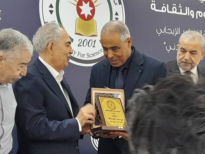 وأجاب على العديد من أسئلة الحضور في نهاية الندوة التي اختتمت بتكريم البروفيسور العساف من الحباشنة بتسلمه درع الجمعية الاردنية للعلوم والثقافة .
