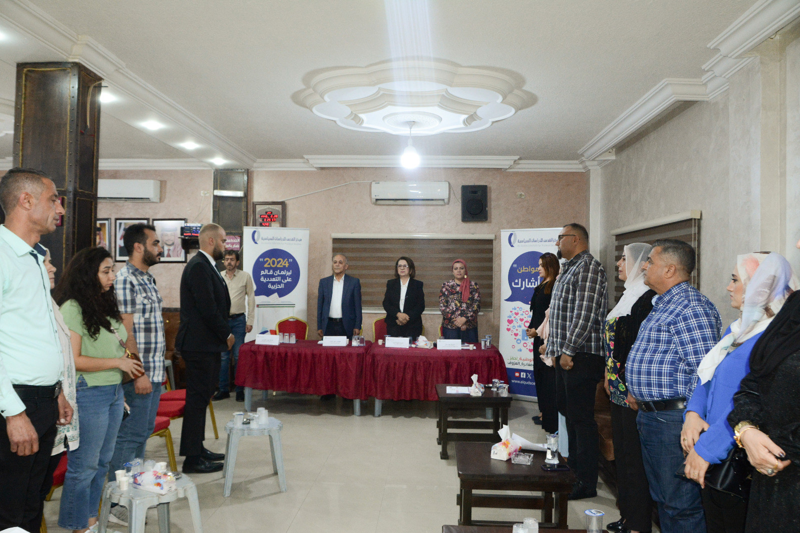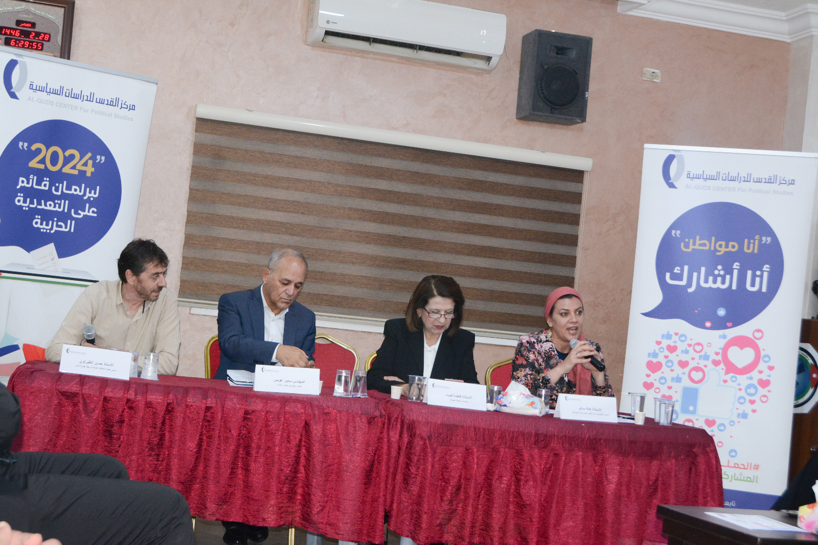 في بداية الحوارية رحبت المديرة التنفيذية لمركز القدس للدراسات السياسية الأستاذة هالة سالم بجمهور المشاركين، منوهةً إلى أن أحد أسباب عقد هذه الحوارية في محافظة الزرقاء هو انخفاض معدلات الإقبال على الاقتراع، حيث تعد الزرقاء وفقاً لبيانات الهيئة المستقلة للانتخابات من الدوائر لأقل اقتراعاً، لذلك جاء التركيز على محافظ الزرقاء، حيث نوهت سالم إلى أن هذه الحوارية كان قد سبقها سبعة حواريات في المحافظة ضمن الحملة الوطنية لحفز المشاركة ومغادرة العزوف، ونوهت سالم إلى أن عدد القوائم المحلية المترشحة للانتخابات في محافظة الزرقاء قد بلغ 11 قائمة محلية مُشيرةً لتحسين الحراك الانتخابي مقارنةً بالسنوات السابقة ومؤكدةً على أن إنتاج برلمان متعدد الأحزاب يتطلب مشاركة كثيفة وواسعة في عملية الاقتراع.