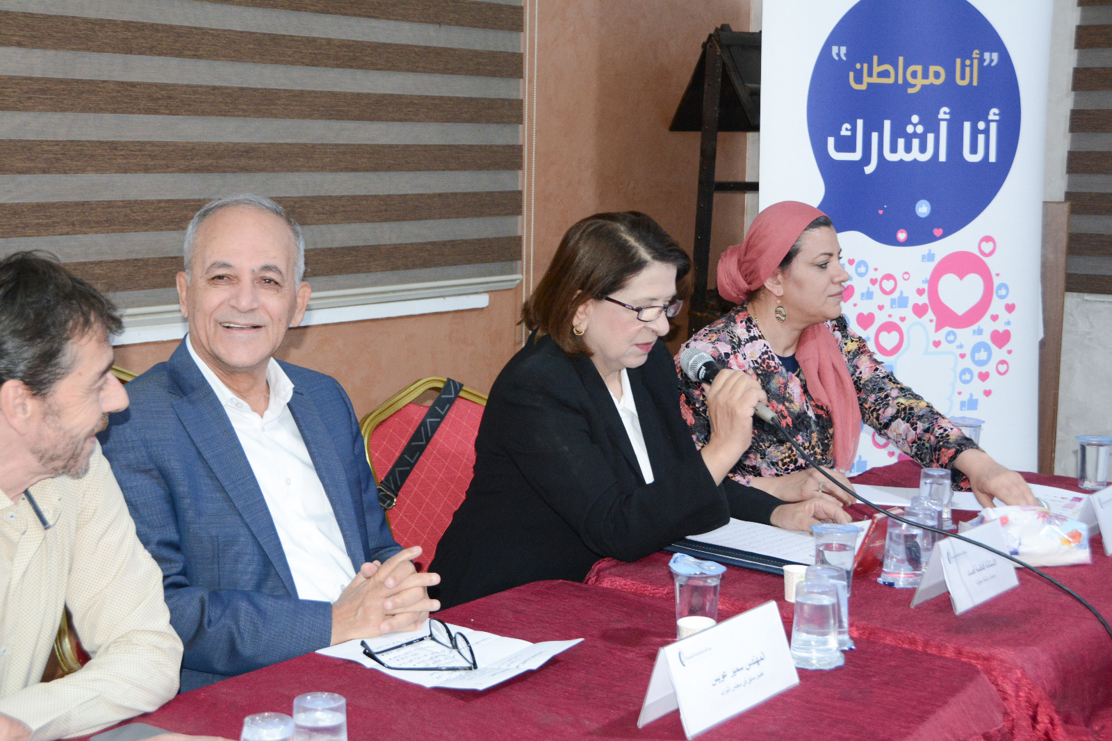 المحامية فاطمة قُصاد ركزت في مداخلتها على التوعية بالمصطلحات والمفاهيم المرتبطة بالديمقراطية ومتطلباتها حيث سلطت الضوء على الدستور الأردني بوصفه أهم المراجع القانونية فهو من يحدد اختصاصات المؤسسات في الدولة وصلاحياتها، موضحةً بأن النظام السياسي في الأردن يقوم بشكلٍ رئيسي على ثلاثة عناصر الملكية ومجلس الوزراء الذي يمثل السلطة التنفيذية ومجلس الأمة الذي يضم مجلسي الأعيان والنواب، وأوضحت قُصاد بأن الأمة هي مصدر السلطات وتمارس صلاحياتها من خلال اختيار من يمثلها في مجلس النواب.
