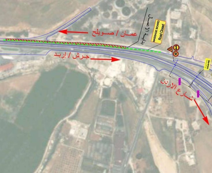 وستعمد الوزارة وبالتنسيق مع مديرية الأمن العام الى إجراء تحويلات جزئية مؤقتة لتنفيذ الأعمال المطلوبة، حيث سيتم فصل الطريق القادم من شارع الاردن /جرش إربد الى عمان بواسطة حواجز بلاستيكية ومباشرة العمل في أحد المسارب والإبقاء على المسرب الآخر مفتوح لحركة المرور، وعند الانتهاء من تنفيذ المسرب الأول سيتم فتح السير عليه ومباشرة العمـــل في المسرب الآخر.