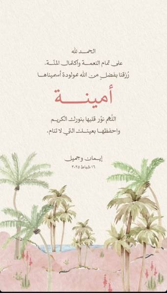 يسر الديوان الملكي الهاشمي أن يعلن بأن صاحبة السمو الملكي الأميرة إيمان بنت عبدالله الثاني، وسعادة السيد جميل ألكساندر ترميوتس، قد رزقا الأحد، الواقع في السابع عشر من شهر شعبان سنة 1446 هجرية، الموافق للسادس عشر من شهر شباط سنة 2025 ميلادية، وفي مستشفى الأمير هاشم بن عبدالله الثاني في العقبة، بمولودة أسمياها أمينة، جعلها الله قرة عين لوالديها.