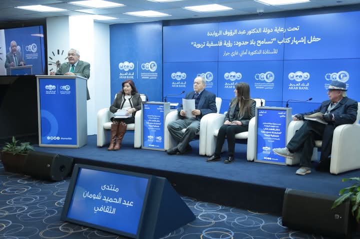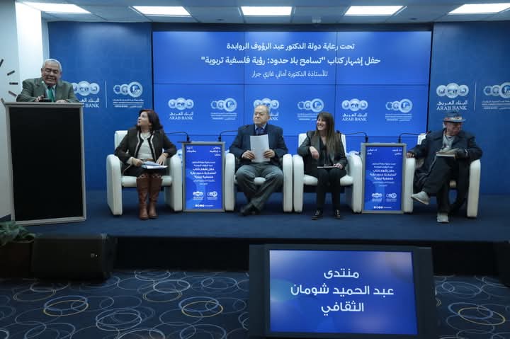 أشهرت الدكتورة أماني جرار، أمس، كتابها المعنون " تسامح بلا حدود: رؤية فلسفية تربوية"، وذلك خلال حفل أقيم في المنتدى الثقافي بمؤسسة عبد الحميد شومان، برعاية رئيس الوزراء الأسبق الدكتور عبد الرؤوف الروابدة.