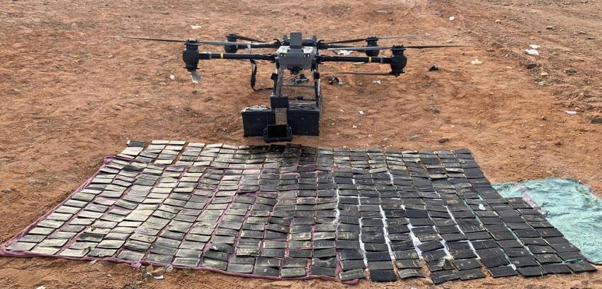 أحبطت المنطقة العسكرية الجنوبية فجر اليوم الأحد، على واجهتها الغربية ضمن منطقة مسؤوليتها، محاولة تهريب مواد مخدرة محملة بواسطة طائرة مسيرة (درون).