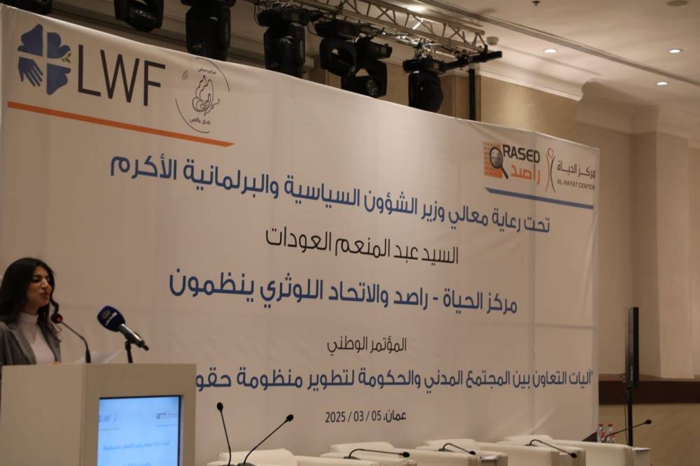جاء ذلك خلال رعايته، المؤتمر الوطني حول "التعاون بين المجتمع المدني والحكومة لتطوير منظومة حقوق الانسان في الأردن"، ضمن مشروع (دعم حقوق الانسان والمشاركة الفاعلة) الذي ينفذه مركز الحياة – راصد بالتعاون مع الاتحاد اللوثري الخيري بهدف تعزيز دور الشباب في تحسين حالة حقوق الانسان في الأردن.