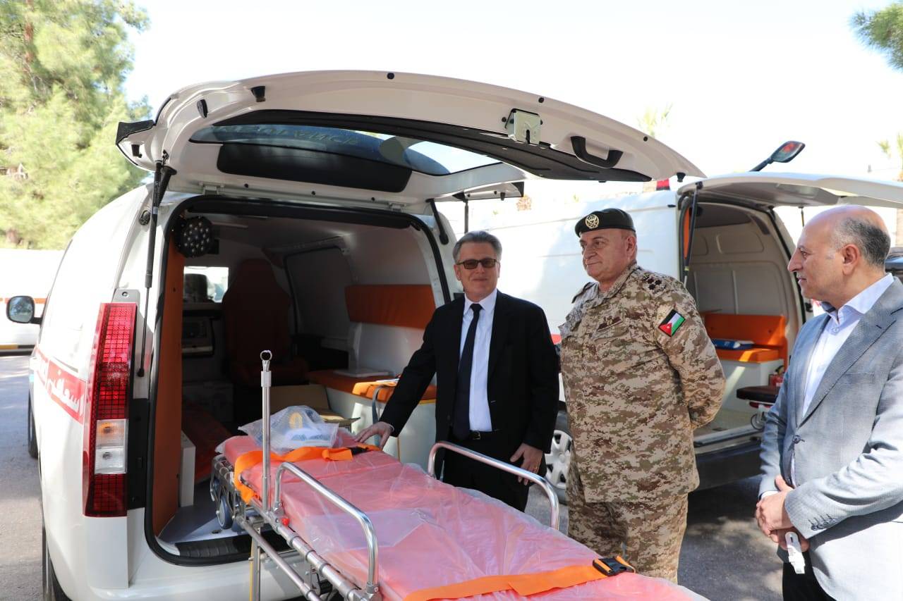 تسلمت مديرية الخدمات الطبية الملكية أمس الثلاثاء، عشر سيارات إسعاف حديثة تبرعت بها الحكومة الفرنسية لمستشفياتها بحضور مدير عام الخدمات الطبية الملكية العميد الطبيب يوسف زريقات والسفير الفرنسي السيد أليكسي لوكوور غرانميزون في عمان.