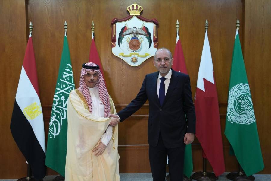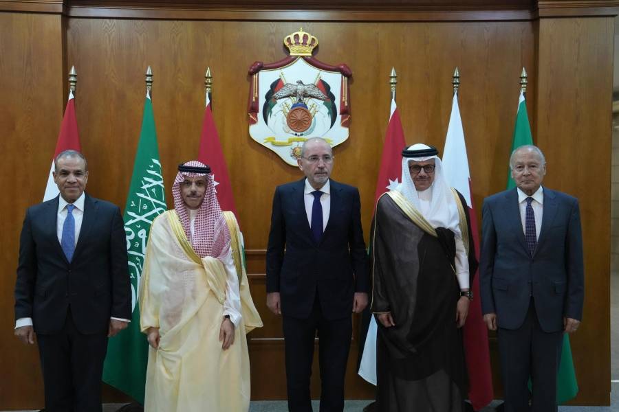 ويضم الوفد رئيس اللجنة، وزير الخارجية في المملكة العربية السعودية سمو الأمير فيصل بن فرحان آل سعود، ونائب رئيس الوزراء ووزير الخارجية وشؤون المغتربين أيمن الصفدي، ووزير الخارجية البحريني الدكتور عبد اللطيف بن راشد الزياني، ووزير الخارجية والهجرة وشؤون المصريين في الخارج الدكتور بدر عبد العاطي، ونائب رئيس اللجنة التنفيذية لمنظمة التحرير الفلسطينية ونائب رئيس دولة فلسطين حسين الشيخ (عبر الاتصال المرئي)، ورئيس الوزراء ووزير الخارجية والمغتربين في دولة فلسطين محمد مصطفى (عبر الاتصال المرئي)، والأمين العام لجامعة الدول العربية أحمد أبو الغيط، وذلك في مقر الوزارة.