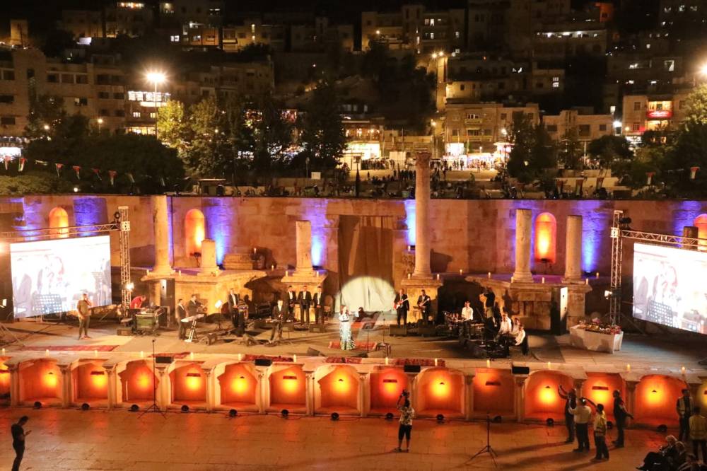 نظّمت نقابة الفنانين الأردنيين، مساء الجمعة، حفلا فنيا على المدرج الروماني في العاصمة عمّان، احتفاء بالأعياد الوطنية، برعاية وزير الثقافة مصطفى الرواشدة، وبحضور جماهيري واسع.