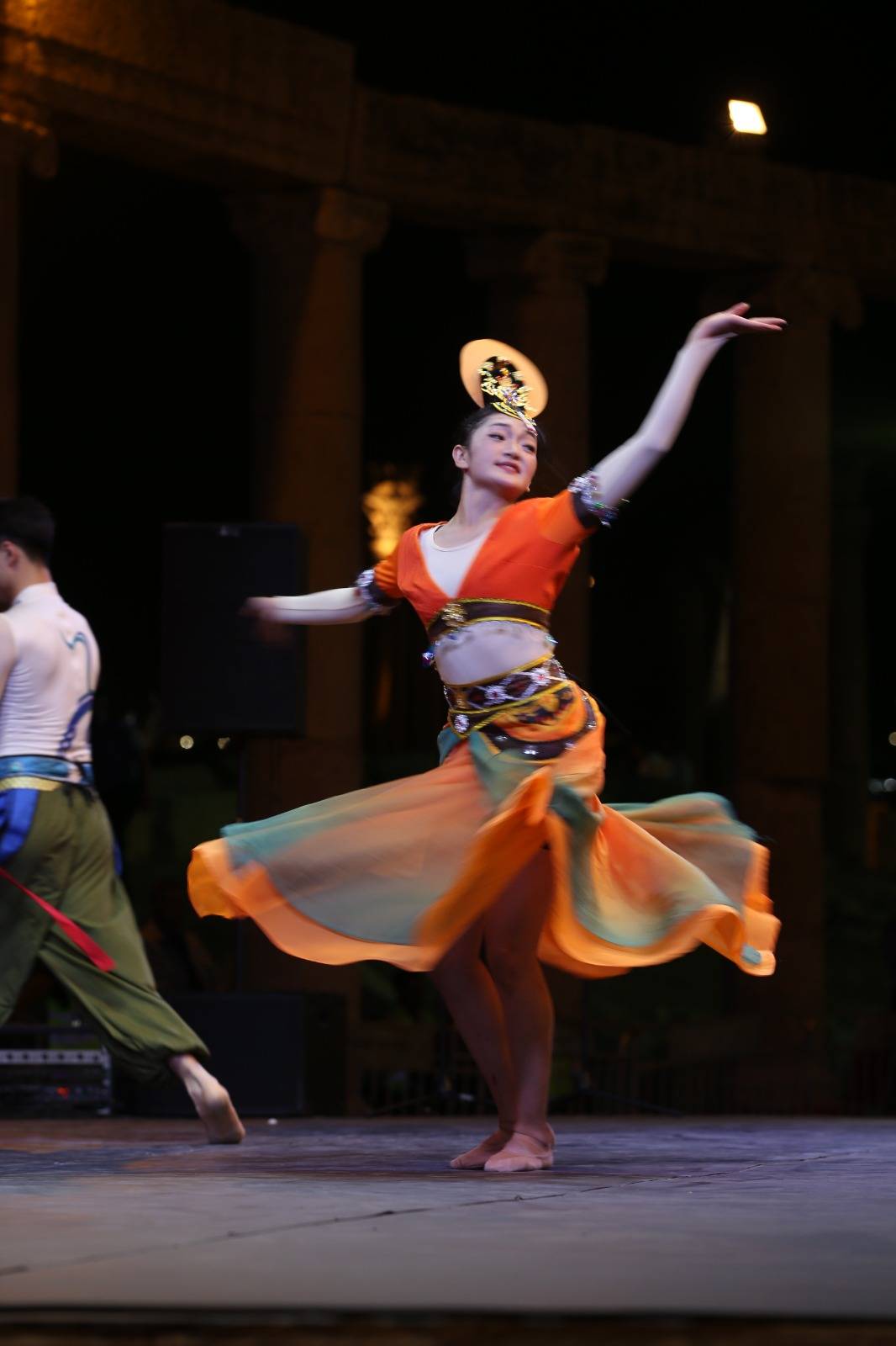 وبعزف منفرد لآلة الإرهو "سباق الخيول " العازفة ليو جيون اكتملت فقرات العرض واتبعوها برقصة " الظلال الرشيقة " للمؤدون : قاو هوي هوي ، ما شين يوي، تشن هوي لين، باي تسي روي الذين نقلوا حضارتهم بابداع فني متميز.