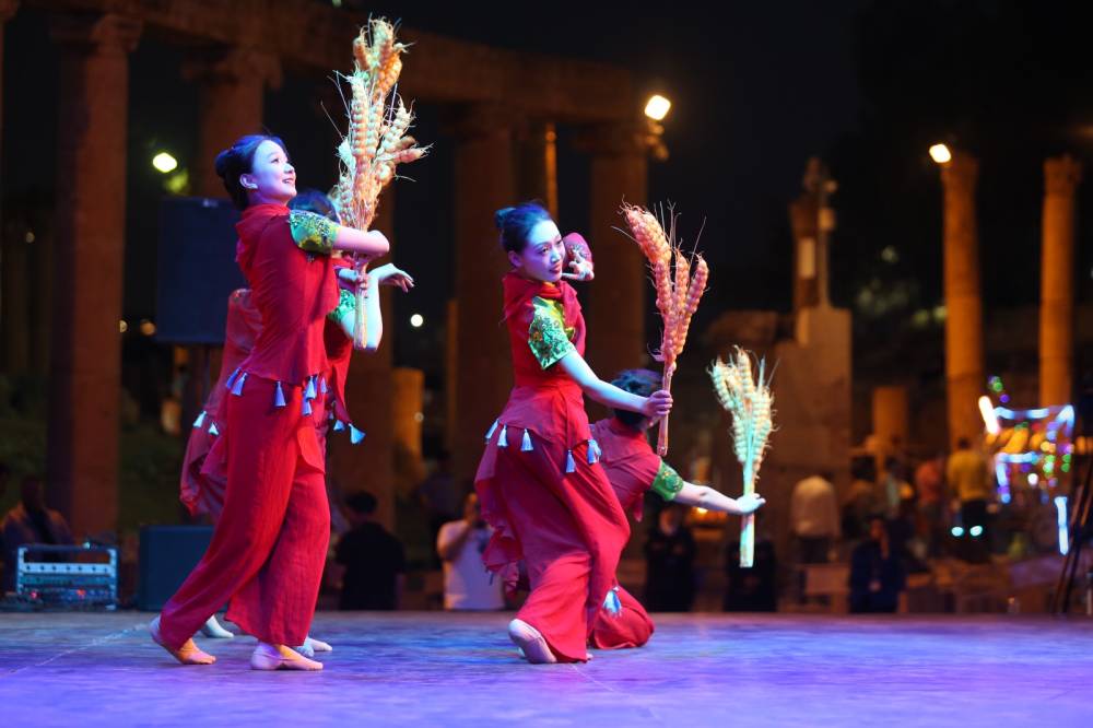 وابدعت في عزف الناي المنفرد لمقطوعة " السوط والحصاد" العازفة تشنغ شيوي يانغ، ووسط اجواء حماسية قدمت الفرقة رقصة " قفزة الاسماك"، و رقصة " الوشاح الاحمر في حقل القمح"، كما قدموا عزف آلة البيبا لاغنية " اهدني وردة " للعازفون هوانغ روي تشي، ما ون ها، وكما تم تقديم عزف جماعي لمقطوعة " خطوة بخطوة نحو الاعلى " ، وفي الختام قدمت الفرقة أغنية "السعادة " ليودعوا به جمهور جرش الذي استقبلهم بكل حب.