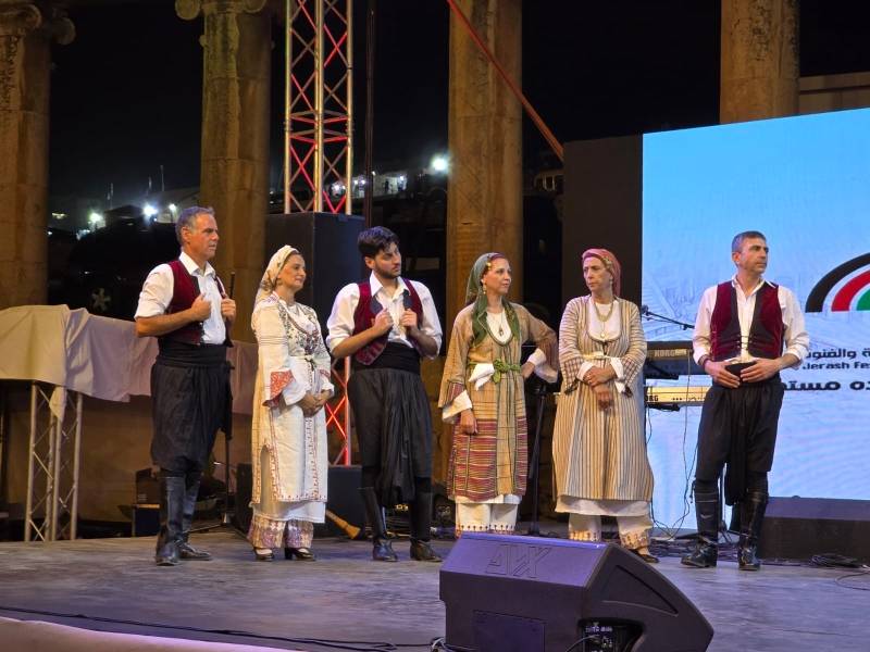 واستكملت الليلة جماليّتها بعرض من فرقةLimassol Folklore Group التي وجهت تحية قبرصية للاردن بانغام والالحان قبرصية أصيلة وبلغة عربية لتعبير عن فرحتهم بتواجدهم في جرش.