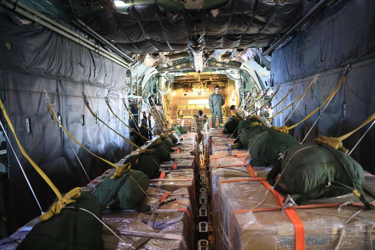 نفذت القوات المسلحة الأردنية، اليوم الخميس ، عملية إنزال جوي إلى قطاع غزة، شاركت في العملية بالإضافة إلى طائرات سلاح الجو الملكي الأردني، طائرات من كل من جمهورية ألمانيا الاتحادية ودولة الإمارات العربية المتحدة وجمهورية فرنسا ومملكة هولندا وجمهورية سنغافورة وجمهورية اندونسيا، حيث تم إسقاط نحو (63) طناً من المواد الغذائية والإغاثية داخل القطاع.