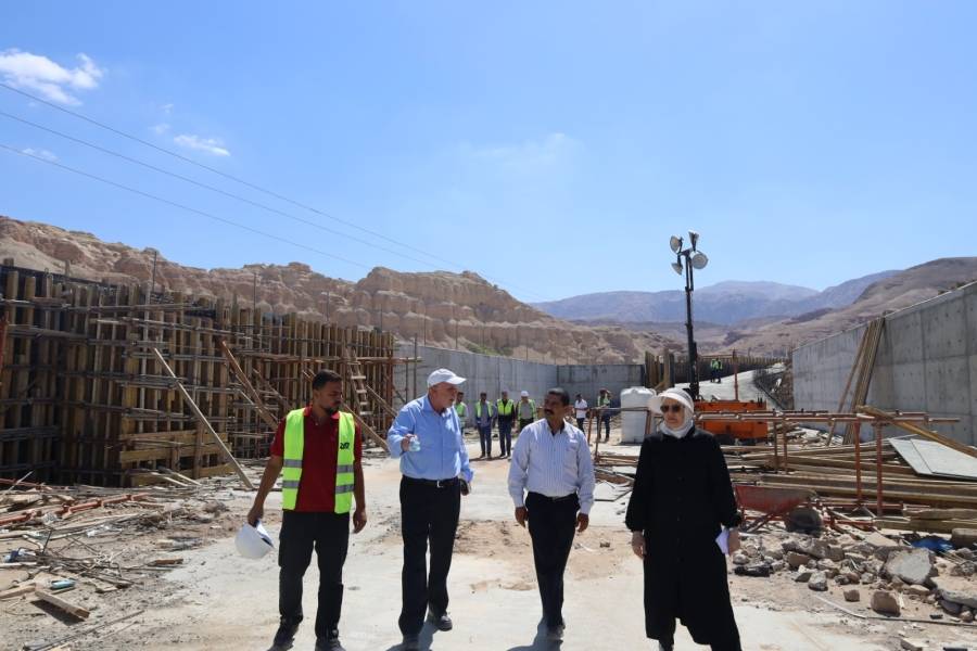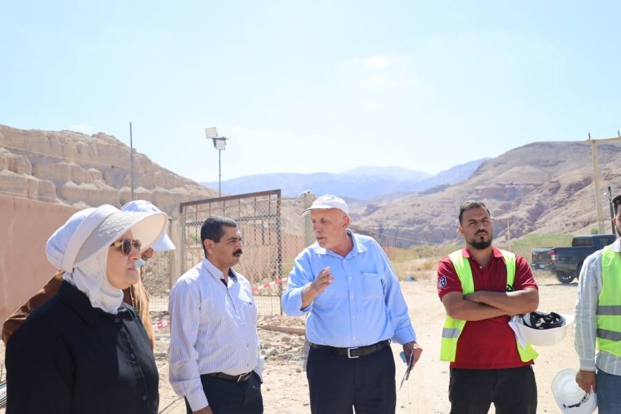 تفقد مساعد الأمين العام للشؤون الفنية المهندس ماجد خريسات، ومدير مديرية مشاريع الري والبنى التحتية المهندسة جمانة الدويري، سير العمل في مشروع توسعة وإعادة تأهيل بركة الحسا في الأغوار الجنوبية.