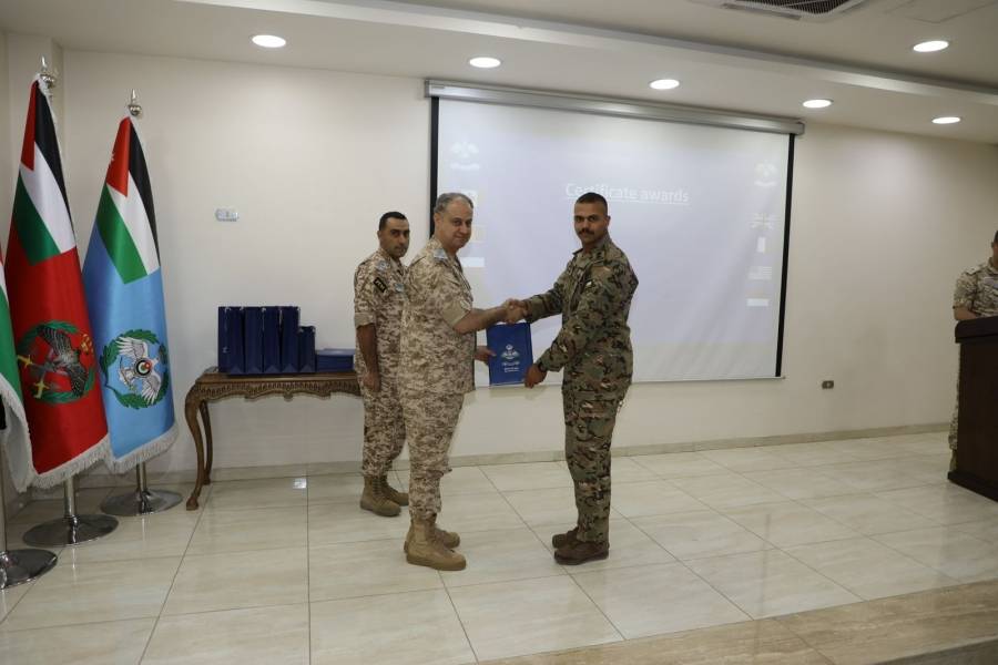 وفي ختام الحفل، الذي حضره عدد من ضباط القوات المسلحة الأردنية، وعدد من الملحقين العسكريين، وزّع قائد سلاح الجو الملكي الشهادات والجوائز التقديرية على الخريجين.