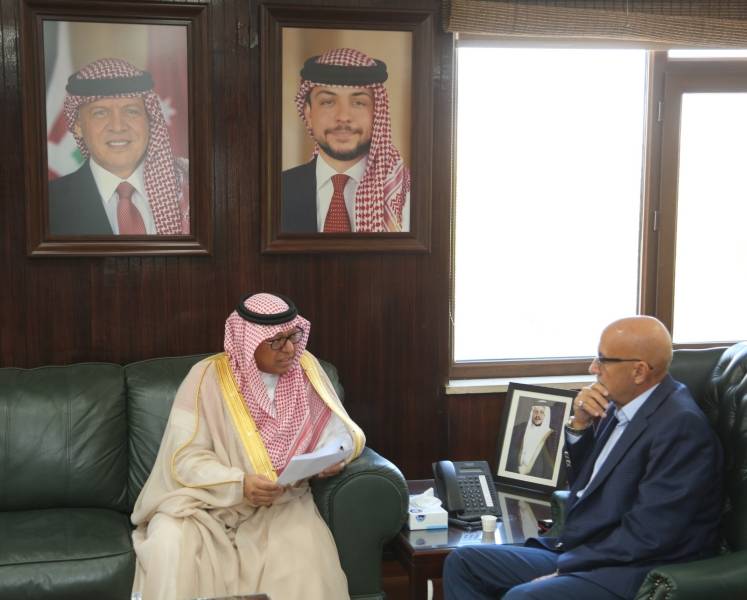 إستقبل وزير المياه والري المهندس رائد أبو السعود اليوم الخميس 11 أيلول 2025 في مكتبه بوزارة المياه والري القائم بالأعمال في سفارة المملكة العربية السعودية لدى الأردن السيد محمد بن حسن مونس، حيث جرى بحث أوجه التعاون المشترك وتعزيزها في مواجهة التحديات المائبة وسبل تطويرها.