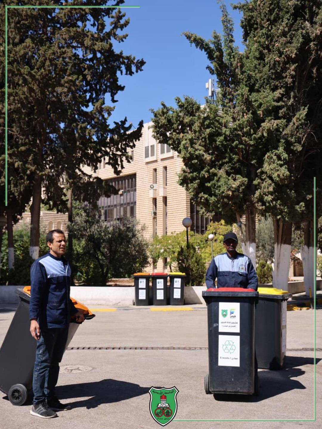وشمل المشروع، الذي نُفّذ بتعاون وانسجام تام بين دائرة الخدمات المساندة ومكتب السلامة العامة والبيئة في الجامعةِ الأردنيّة، توزيع نحو 500 حاوية مخصّصة للتدوير في مختلف مرافق الجامعة، لفرز النفايات إلى أربع فئات رئيسة: المعادن، والورق والكرتون، والبلاستيك، والنفايات العضوية.