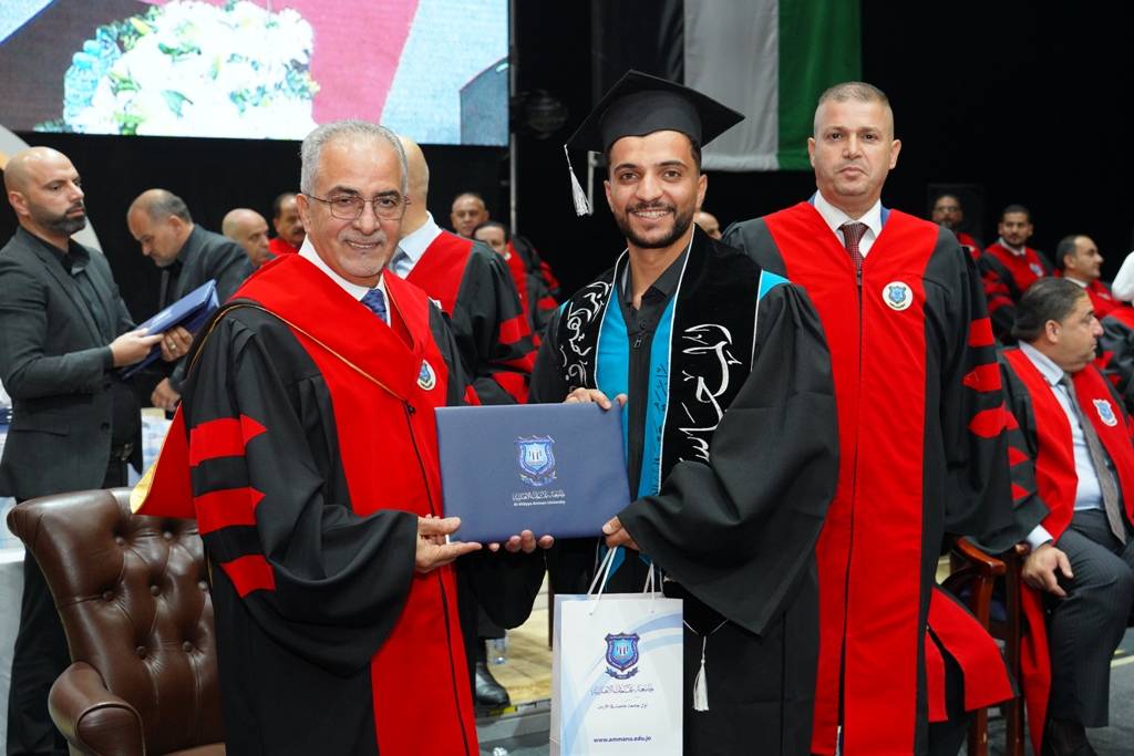 وأضاف : أيها الحضور الأجلّاء، من قلب الأردن النابض، من جامعةٍ وُلدت من رحم الرؤية والبصيرة، نحتفل اليوم تحت راية جامعة عمّان الأهلية، التي لم تكن يومًا مجرد صرح أكاديمي، بل كانت وما تزال منارةً تُشِعُّ علمًا وتميّزًا.