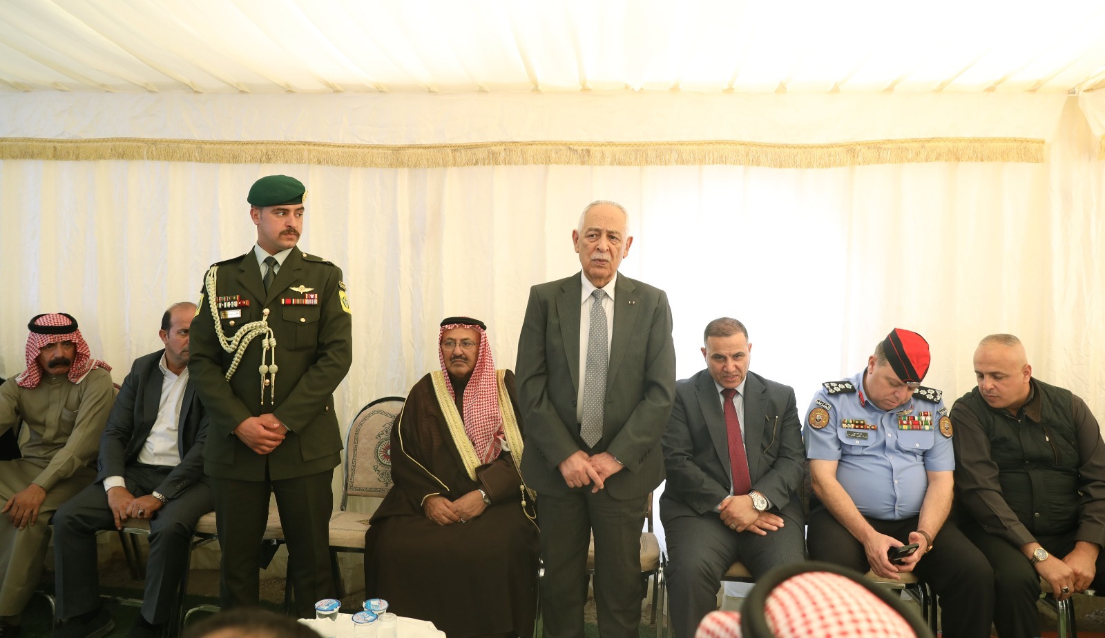مندوبا عن جلالة الملك عبدالله الثاني وسمو الأمير الحسين بن عبدالله الثاني، ولي العهد، قدّم رئيس الديوان الملكي الهاشمي يوسف حسن العيسوي، اليوم الأحد، واجب العزاء إلى عشائر الغويري والخلايلة وأبو صعيليك، ناقلا إليهم تعازي ومواساة جلالته وسمو ولي العهد.
